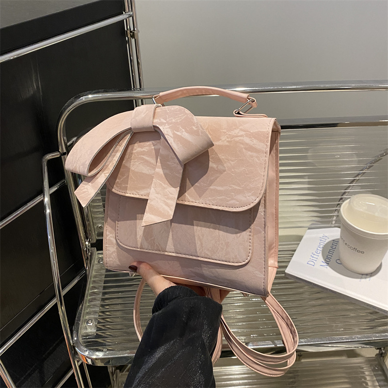 可愛い蝶結びデザインが特徴的なレディースリュックです。 旅行や日常使いに最適なコンパクトサイズで、背負いやすさと上品さを両立。 6色のカラーバリエーションからお好みの色をお選びいただけます。 機能的で洗練されたデザインの女性向け旅行用バッグです。