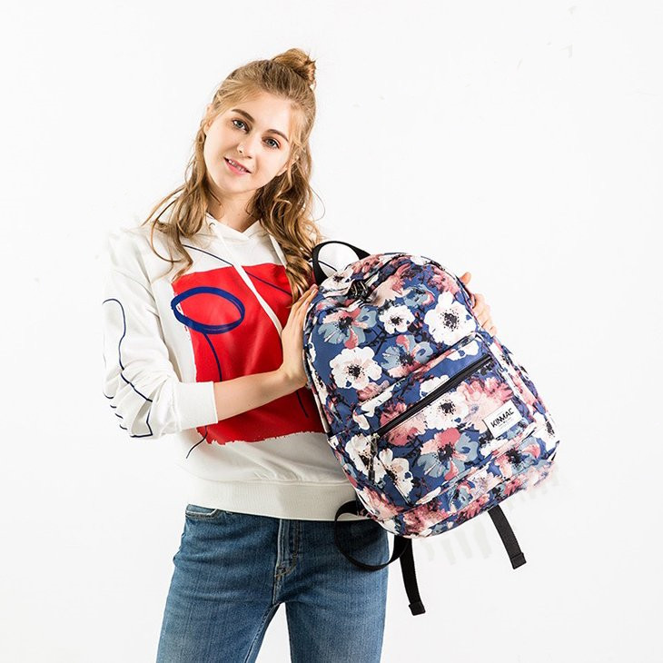可愛らしい花模様が女性らしさを演出し、機能性も抜群の背負い鞄です。