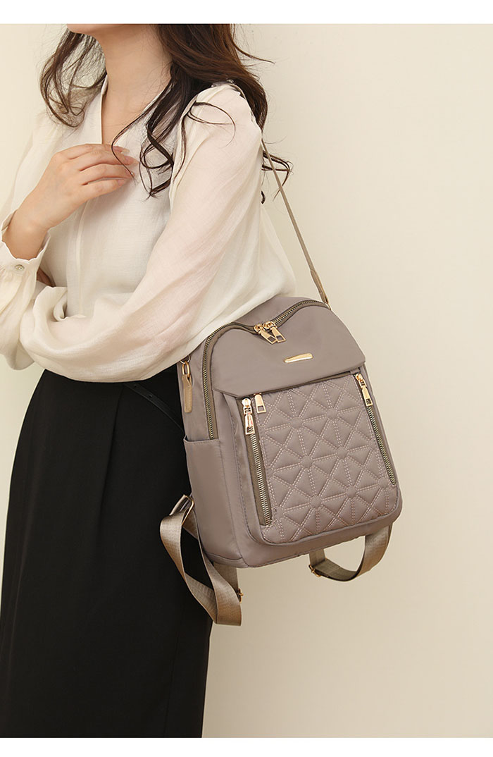 フロントのファスナーポケットや複数の収納スペースで実用性と美しさを両立